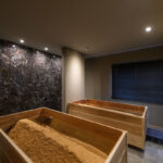 設計事務所 rikka 様とのコラボリノベーション。「酵素温浴」という非日常の特別な時間を過ごすのに相応しい、良質な空間を演出しました。 酵素風呂では自然素材を各所に用い、糠と共に呼吸する空間に仕上げました。